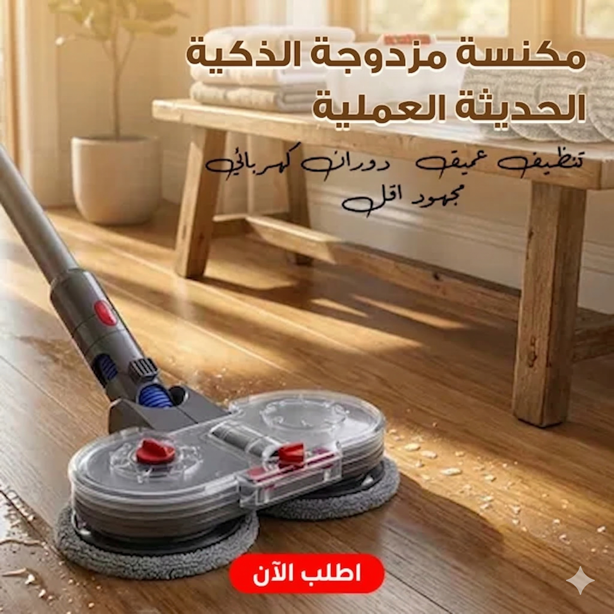 يمسح أرضيات خشبية، سيراميك، وبلاط بسهولة
