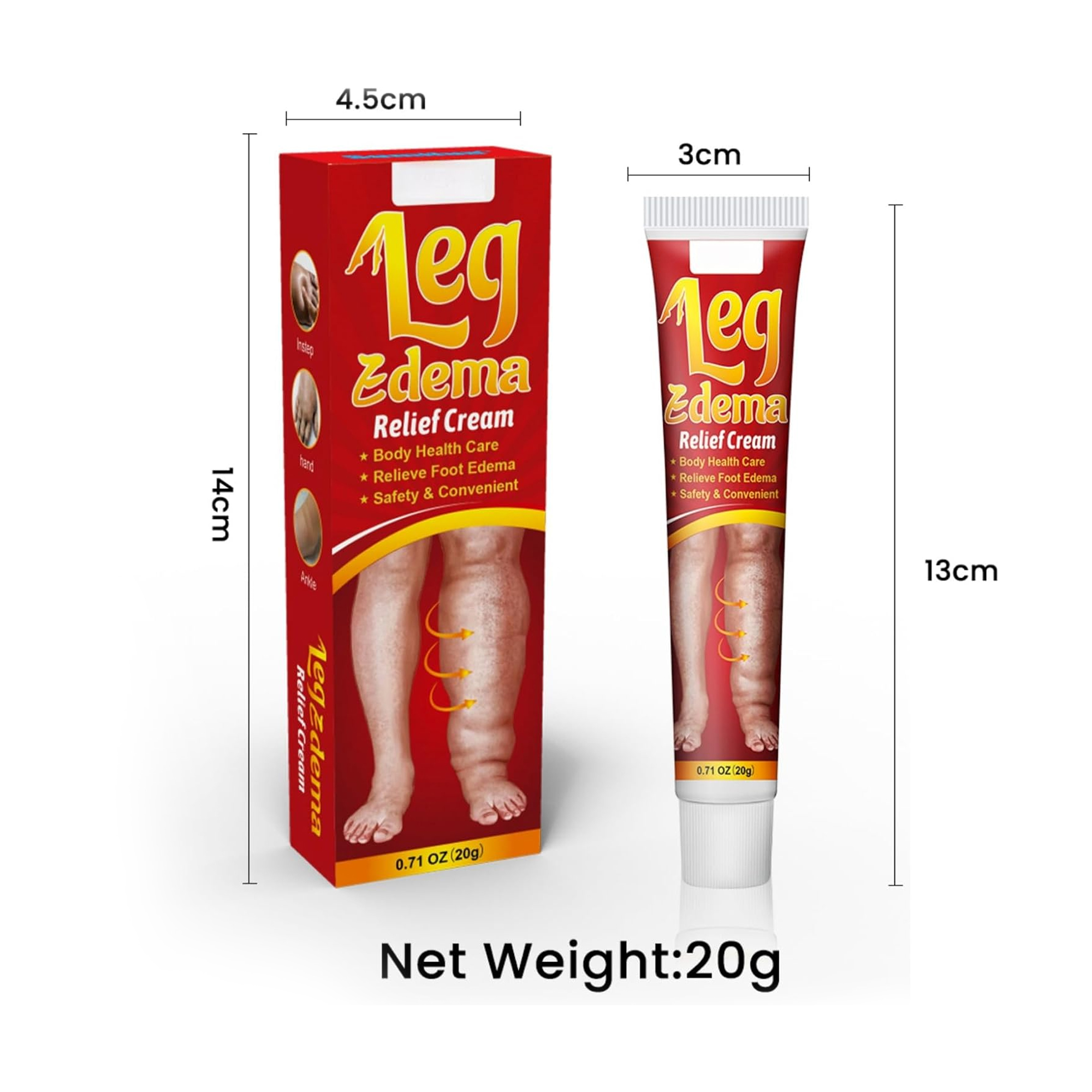 1 × كريم تخفيف تورم الأرجل والقدمين 20 جم