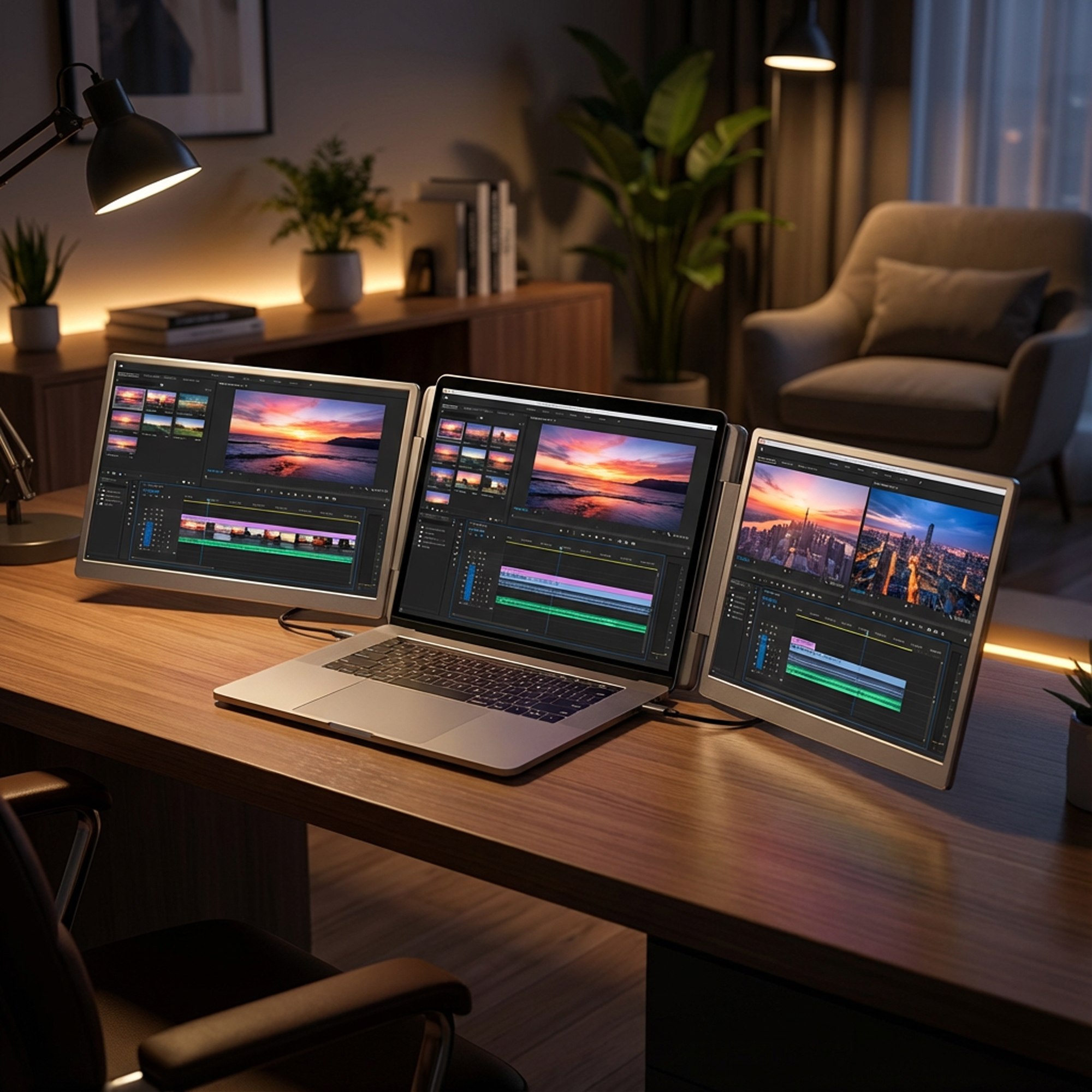 زاوية الإنتاجية شغل أكتر بكفاءة مع شاشة ثلاثية محمولة