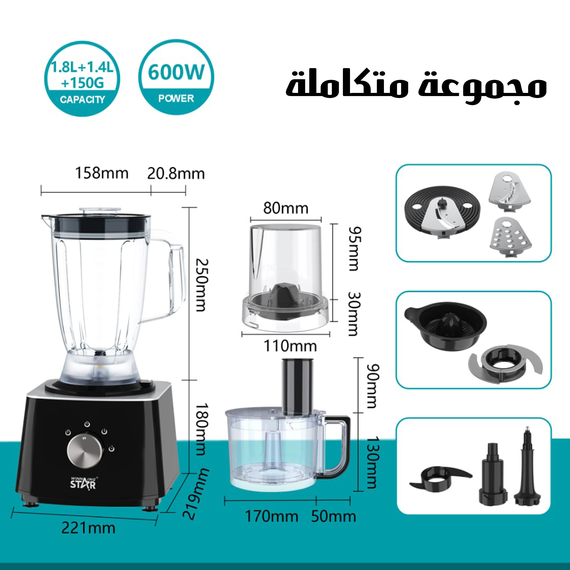 1 x وعاء الخلاط